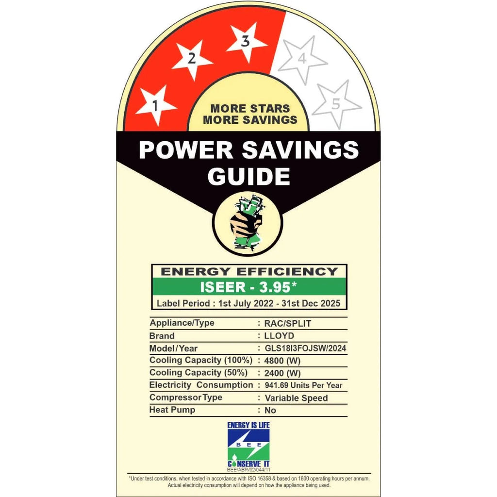 Lloyd 1.5 Ton, 3 Star Elixir Split AC (GLS18I3FOJSW)