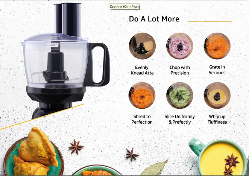 • Multi-purpose processing: chopping, kneading, grating, slicing, and more