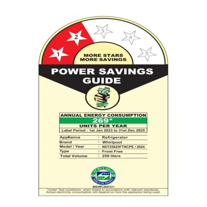 Whirlpool | Neo fresh 259L | 2 Star | Frost Free | Double-Door Refrigerator (22202)
